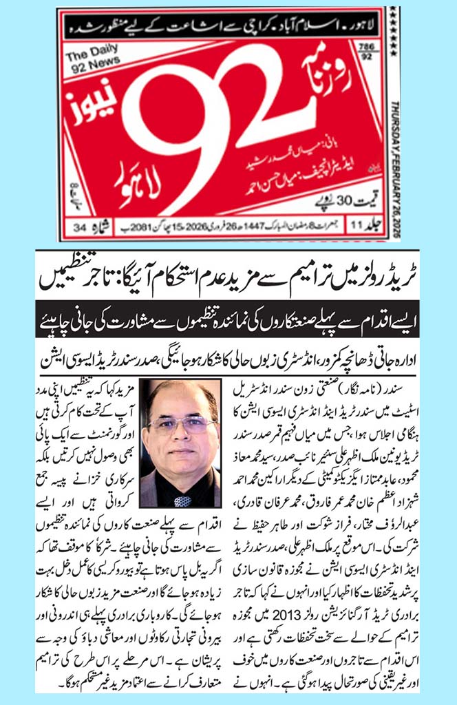 In 2006, Association starts working with the name of Sundar Industrialists Welfare Association (SIWA) and now it has been registered with Directorate General Trade & Organizations (Ministry of Commerce) as Sundar Trade and Industry Association (STIA). We are the sole town association registered with DGTO in the country other than Karachi.